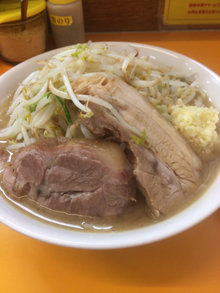 並ぶ→食券買う→席に座る→「ニンニク入れますか?」→コールする→食べる!これだけです!